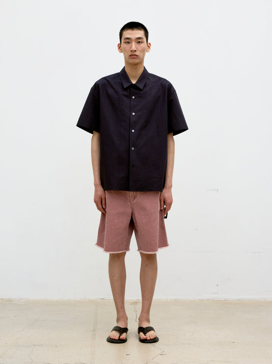 COOR, PANEL LINE CAMP COLLAR HALF SHIRT, Dark Navy