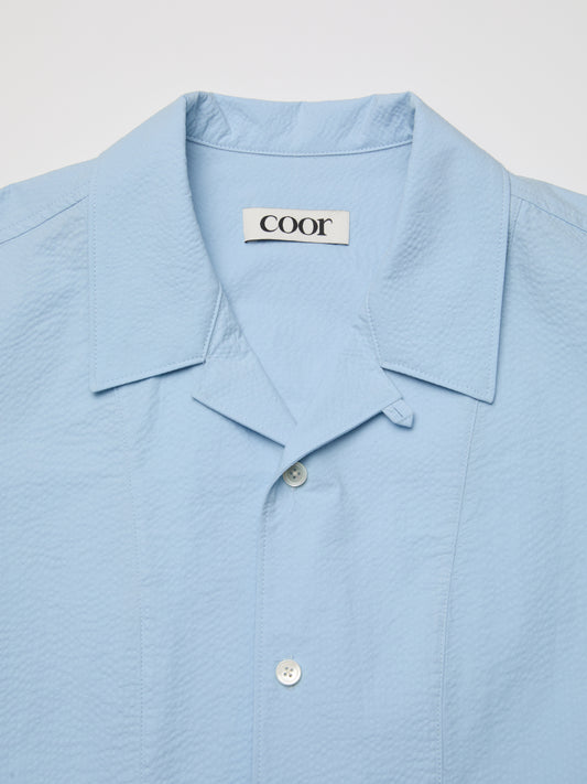 COOR, PANEL LINE CAMP COLLAR HALF SHIRT, Sky Blue