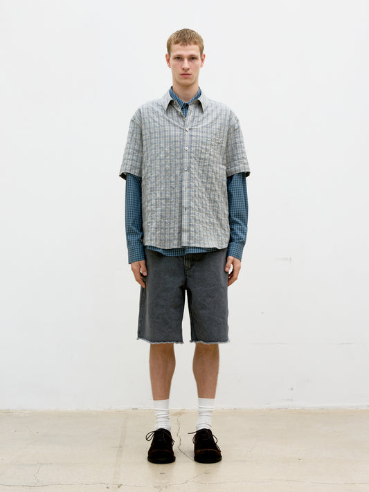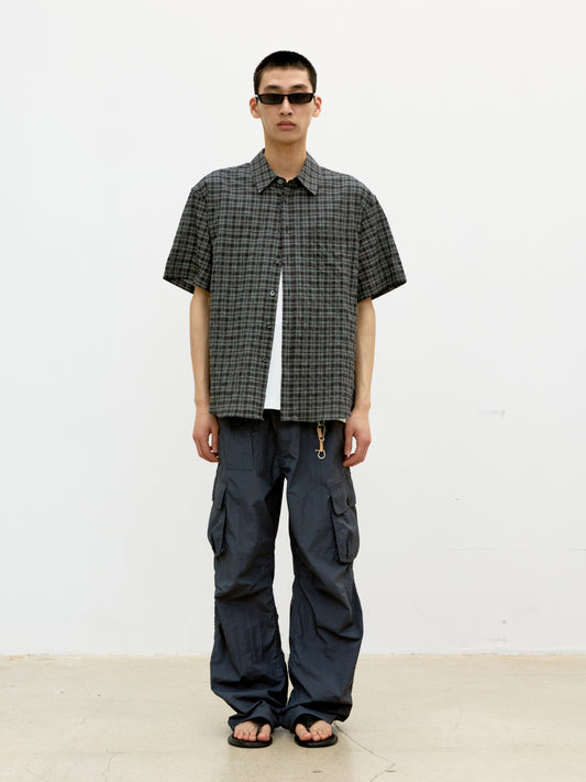 COOR, Alternative Wrinkle Check Half Shirt, Washed Black