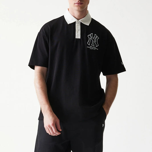 New Era, New York Yankees Oversized Polo T-Shirt, Black