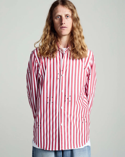 Pop Trading, POP LOGOS STRIPE SHIRT EARTH, RED/WHITE