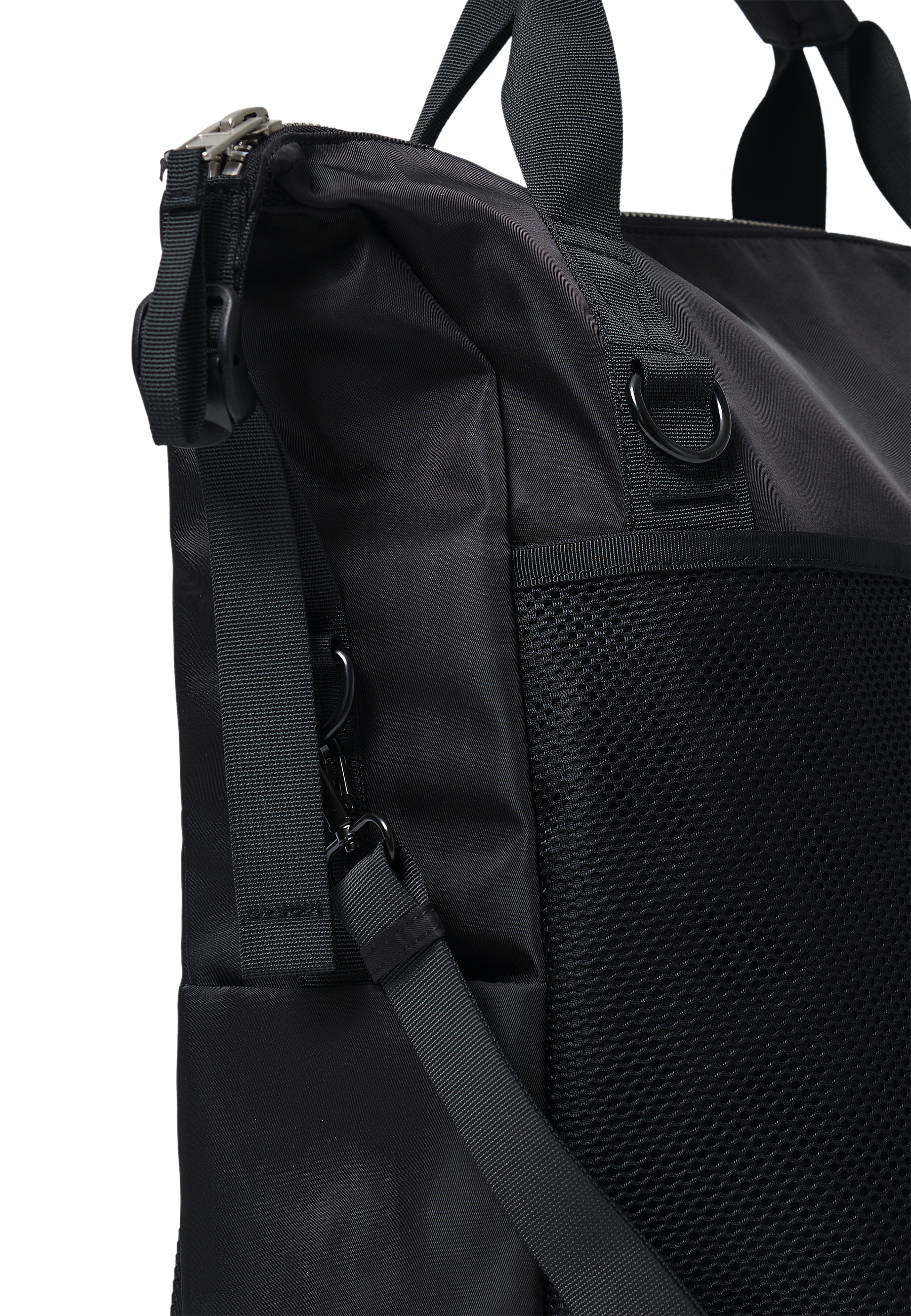 Materialet til taskerne er 100% genanvendt polyamid (nylon), og lommerne er lavet af 100% genanvendt polyester.