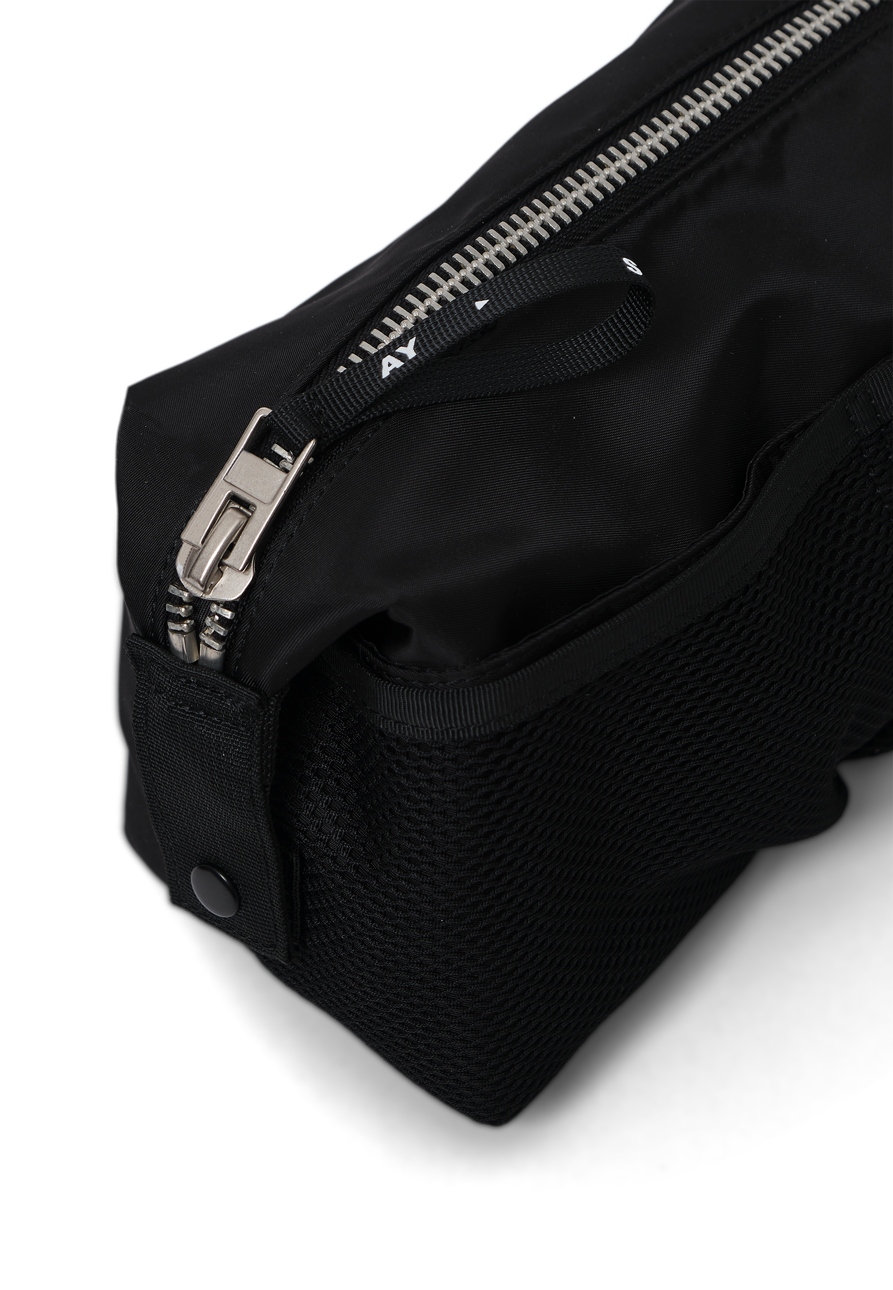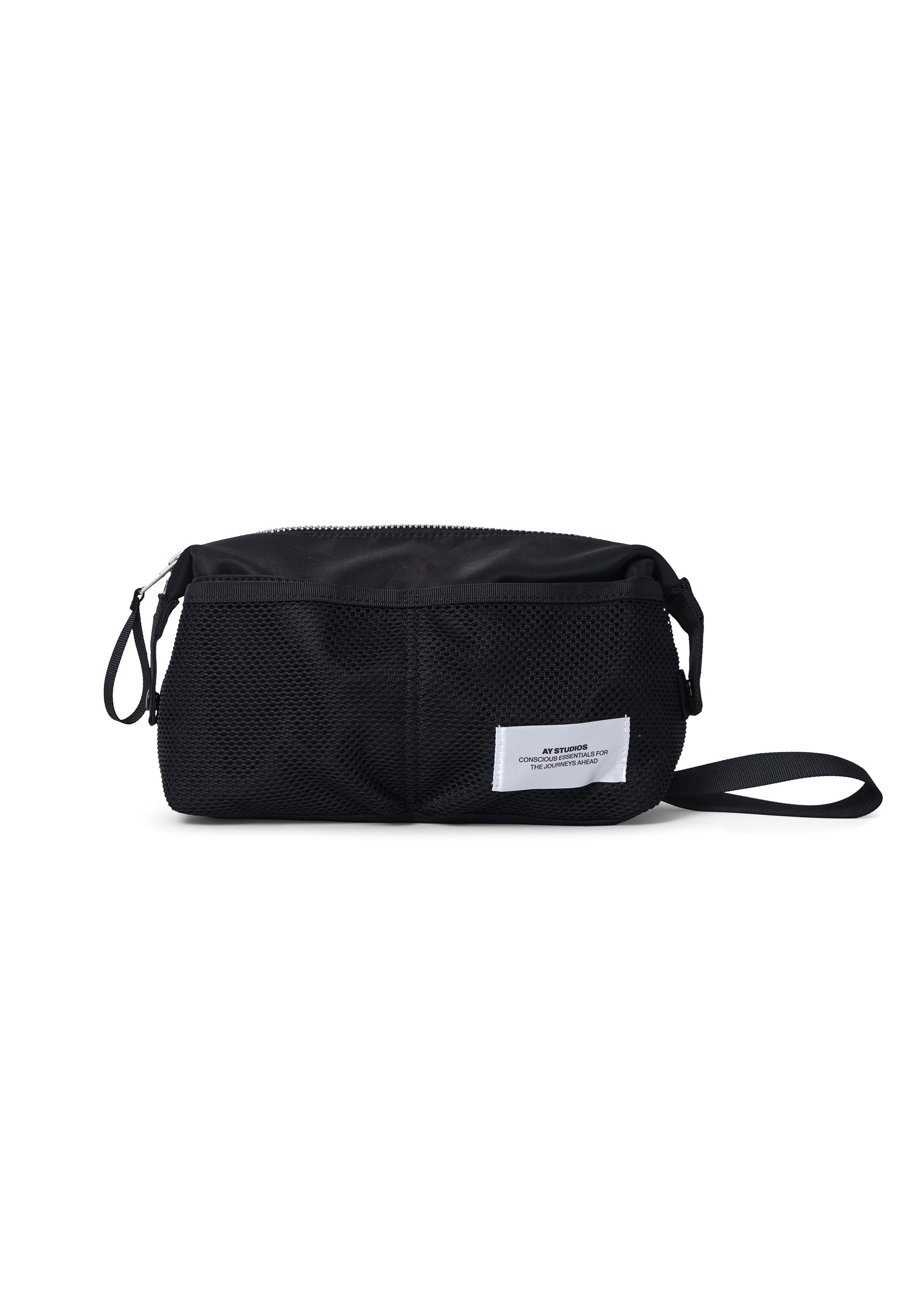 Gør din rejse nemmere med AY Studios' danskdesignede toilettaske i vandafvisende, genanvendt nylon – et perfekt valg for den moderne rejsende. Tasken er udstyret med to rummelige yderlommer, to indvendige netlommer til småting og en praktisk bærestrop, der gør den let at transportere og holde styr på dine essentials.