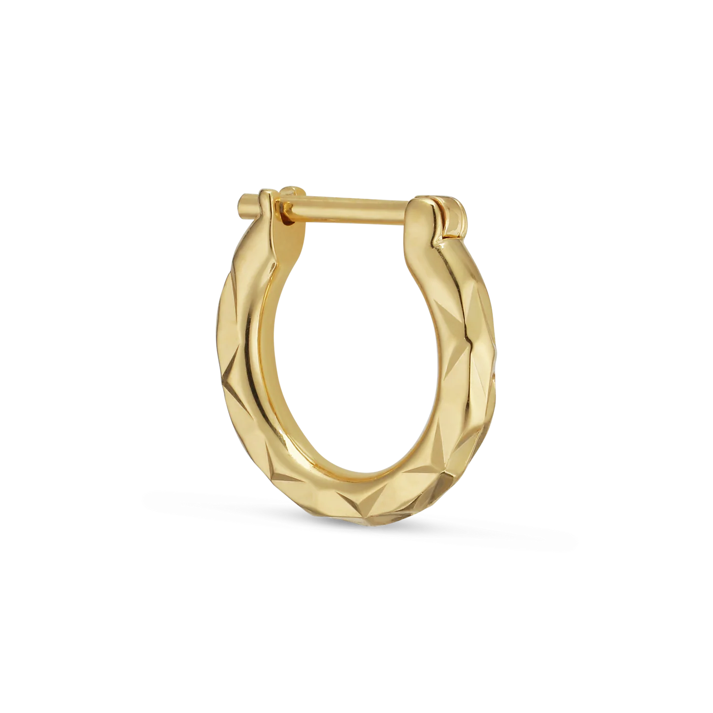 Tiny Rhombus Earring er en smart lille ørering, bygget op af gentagne tredimensionelle rombeforme. Disse fanger lyset og skaber et fint spil mellem lys og skygge, der giver smykket et unikt og karakterfuldt udtryk.