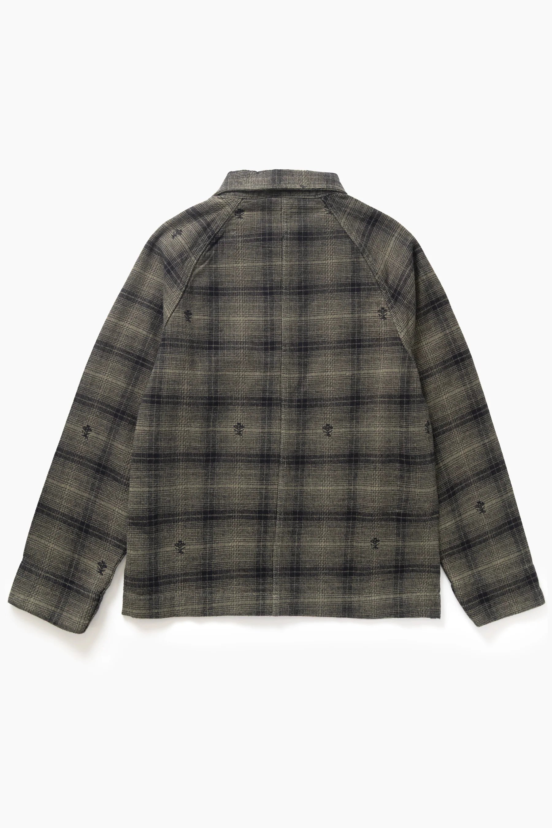Thistle Plaid Front Of House Jacket fra Service Works er designet med et almindeligt fit og raglanærmer, der giver både bevægelsesfrihed og et afslappet udtryk.